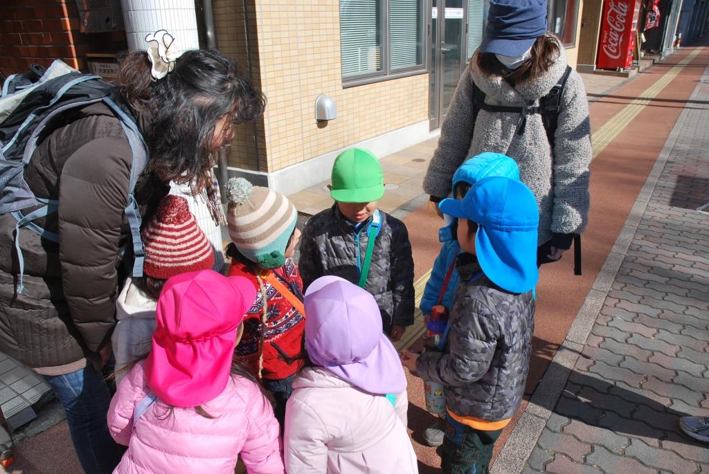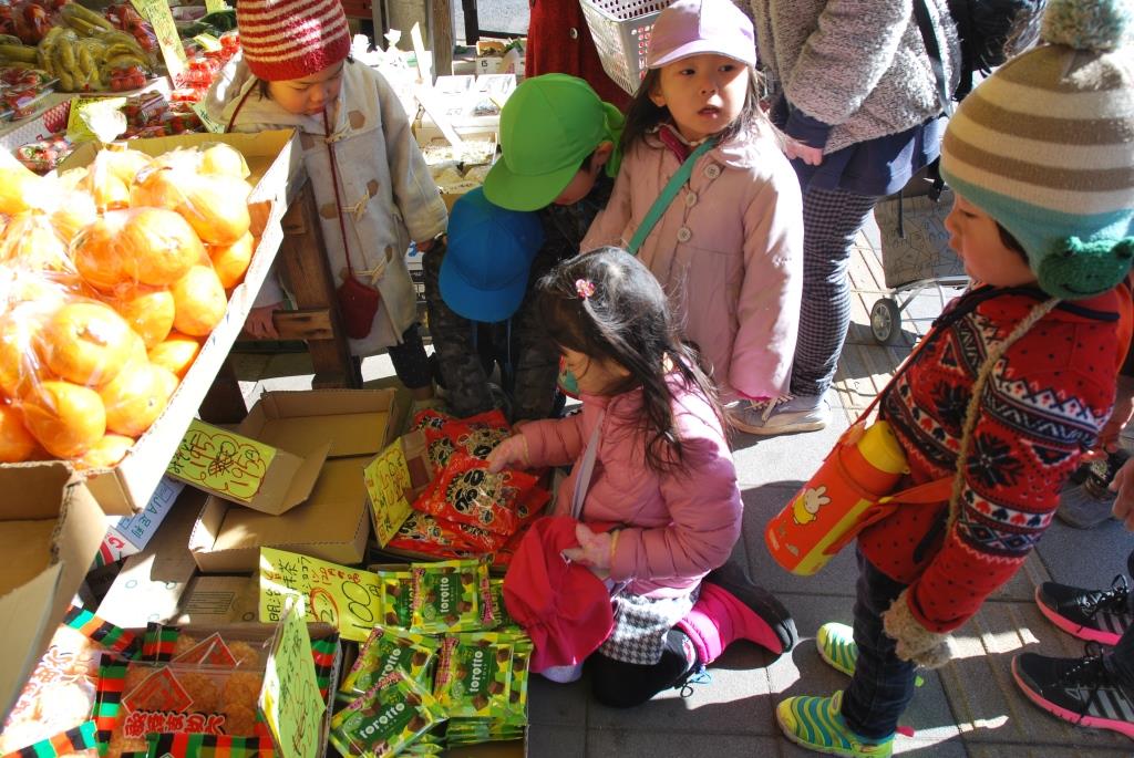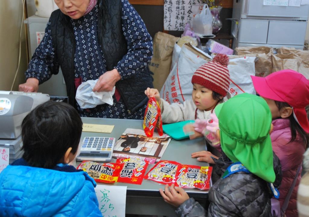 4歳児と3歳児の何人かが、豆まき用の豆を探しに、