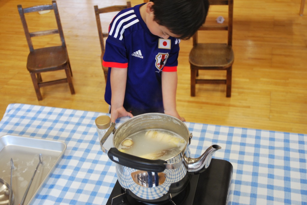 【4歳児】タケノコ見つけて掘った→食べたい
