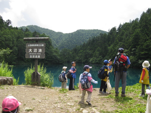 コバルトブルーの綺麗な大沼池。酸性が強く、魚などの生き物は住めないのです。