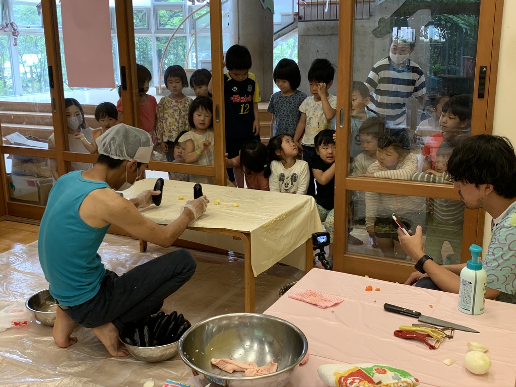 たくさん遊んで考えます遊びの中では、身近な環境や題材と対話し、試行錯誤や工夫を通して具現化しています。周りの子どもたちや保育者と花開くケース、じっくりと熟成するケース、「ひらめく」響き合いも大切です。4歳児以降は、プロジェクト的な遊び(継続)や、ゼミ的な遊び(探究)につながります。自分が当事者(熱源)になって、子どもも大人も関係なく考えを出しあって共創しながら、そのクラスらしい生活と遊びを形成していきます。